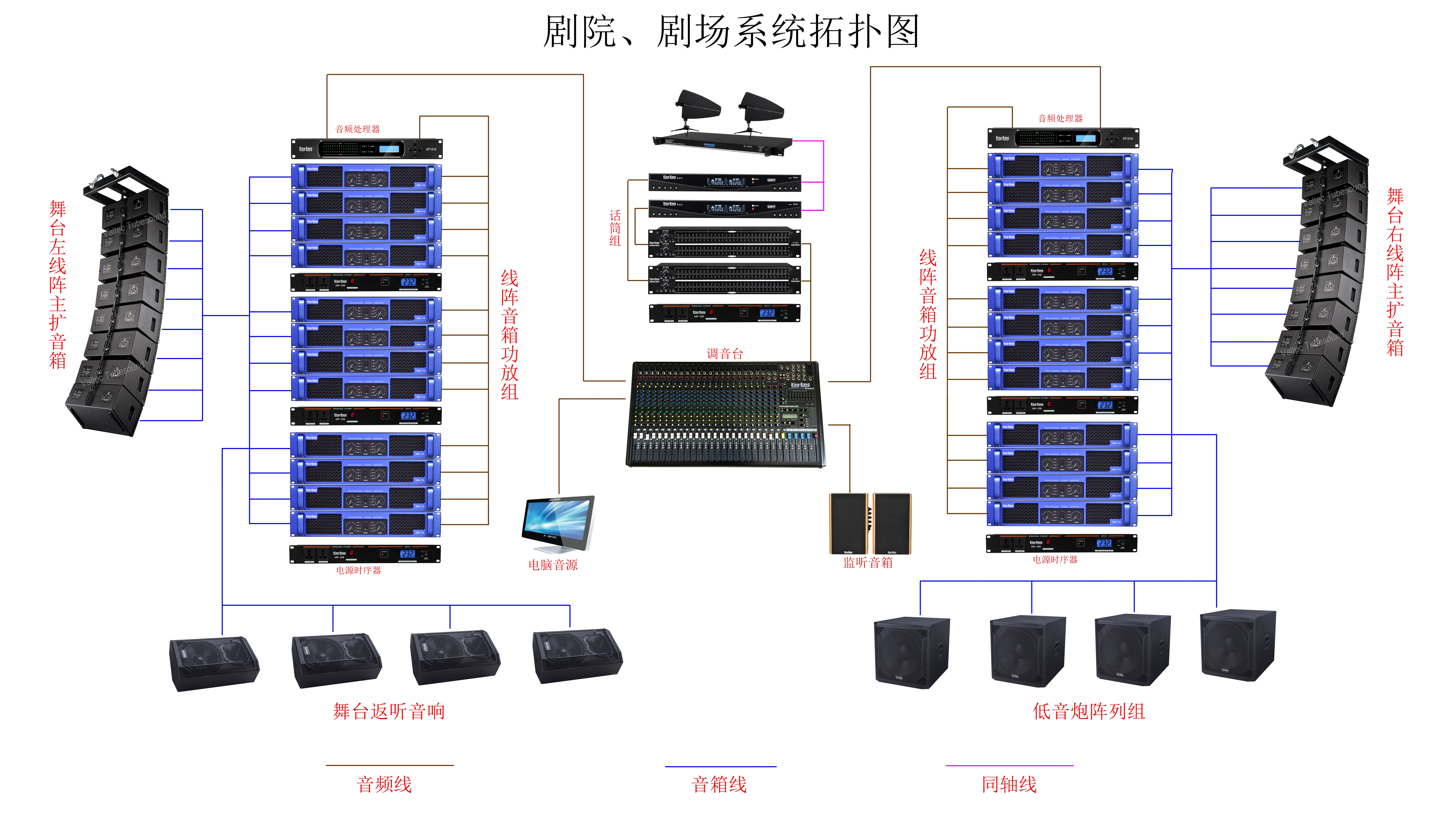 劇院的觀眾廳擴聲系統,舞臺返送監聽系統,以及控制室監聽系統。